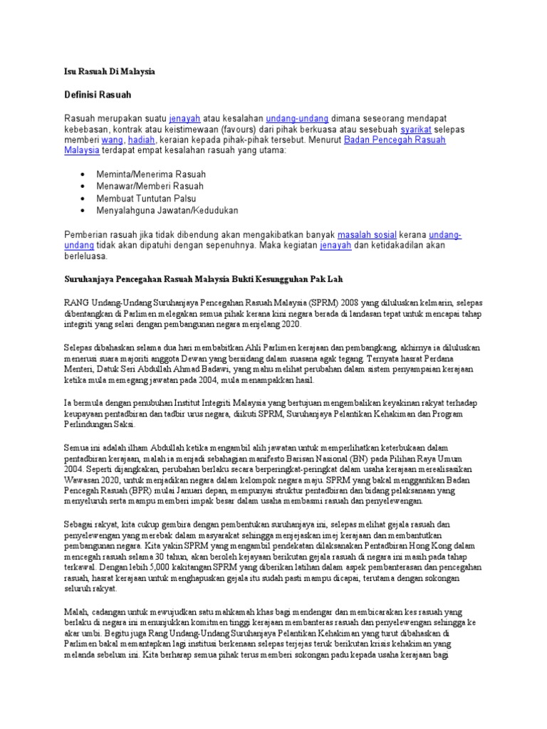 Isu Rasuah Di Malaysia