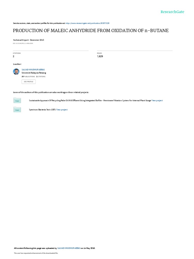 Productionofmaleicanhydridefromoxidationofn Butane Pdf Oxygen Heat Exchanger