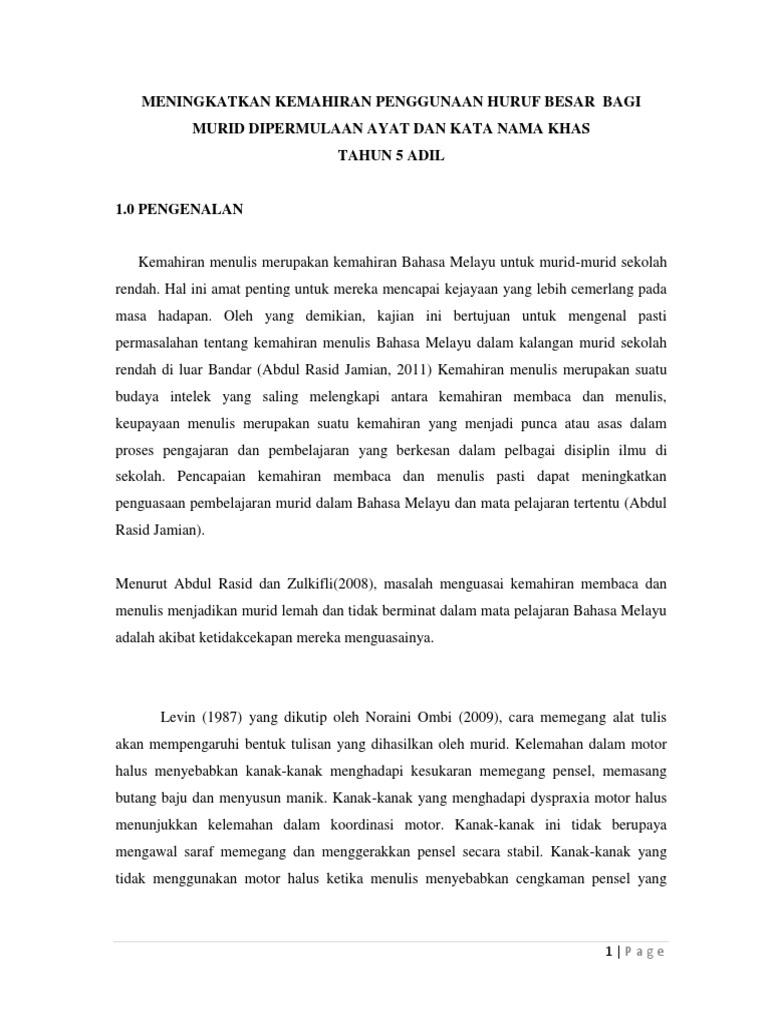 Laporan Kajian Tindakan Bahasa Melayu Penggunaan Huruf Besar
