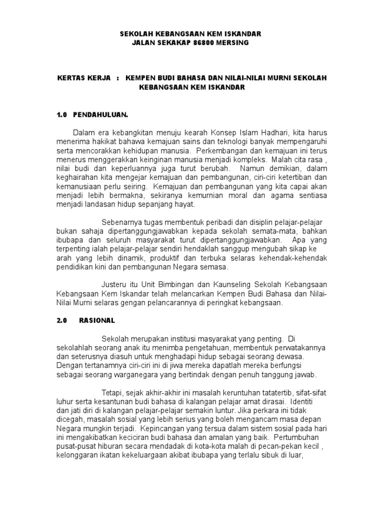K Kerja Program Budi Bahasa Budaya Kita 2 Doc