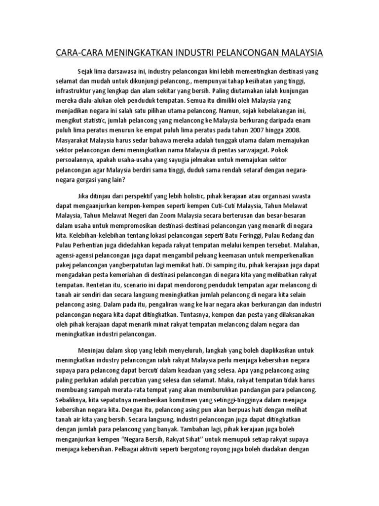 Contoh Karangan Kepentingan Industri Pelancongan Hontoh Cute766