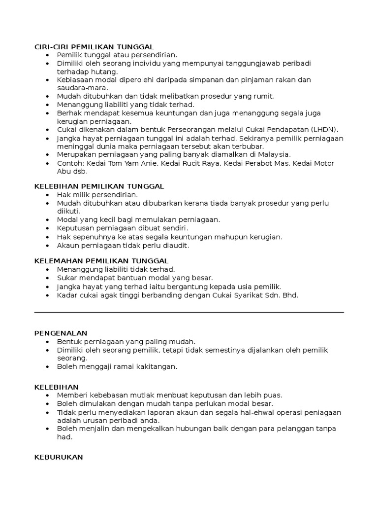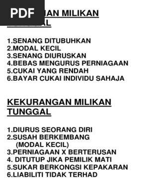 3 Nyatakan Keburukan Dan Kebaikan Milikan Tuggal