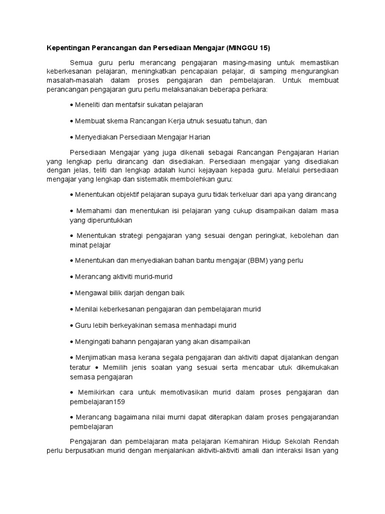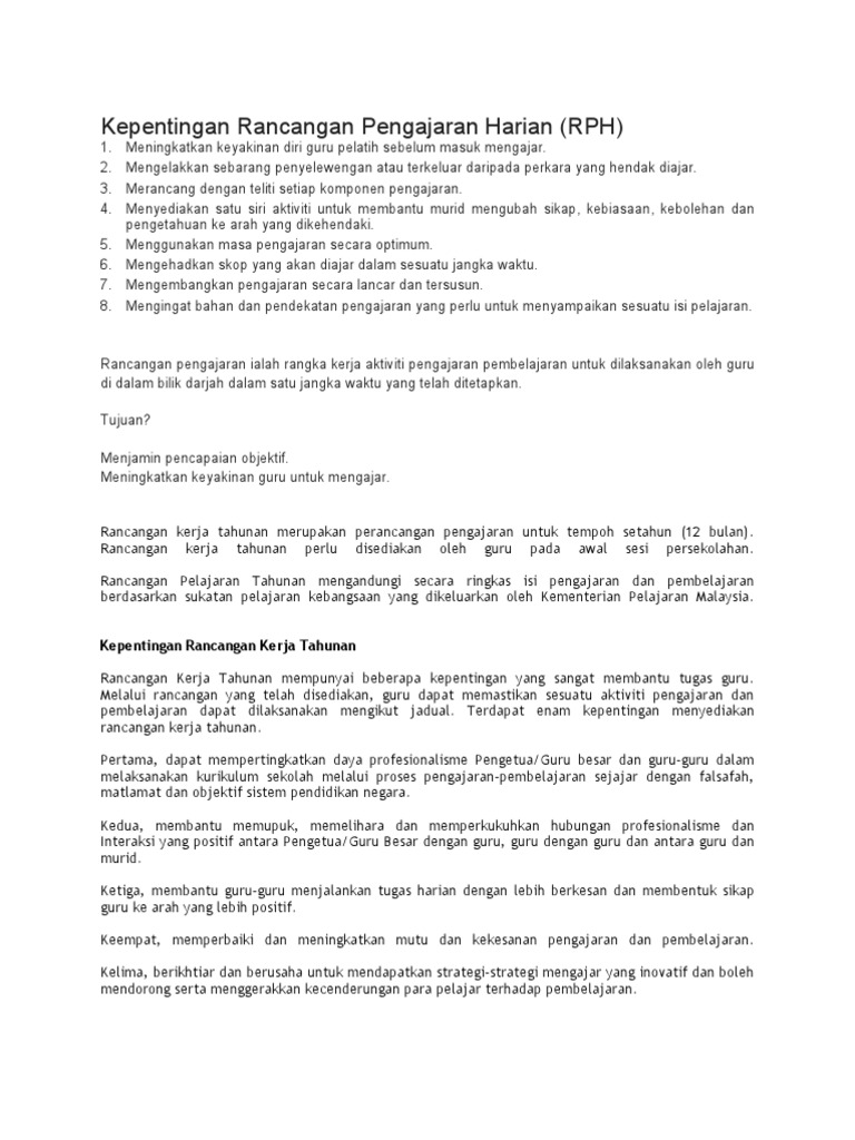 Ilmu Pendidikan Kepentingan Rancangan Pengajaran Harian