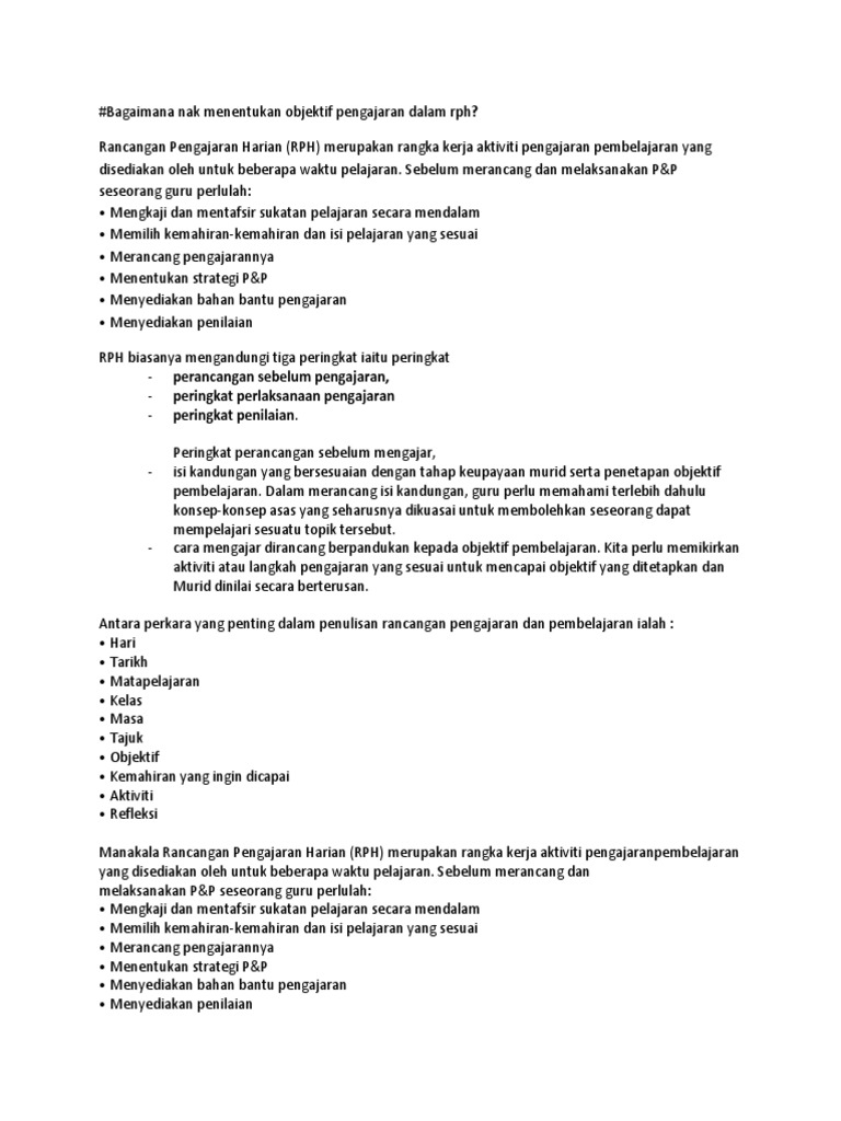 Bagaimana Nak Menentukan Objektif Pengajaran Dalam Rph