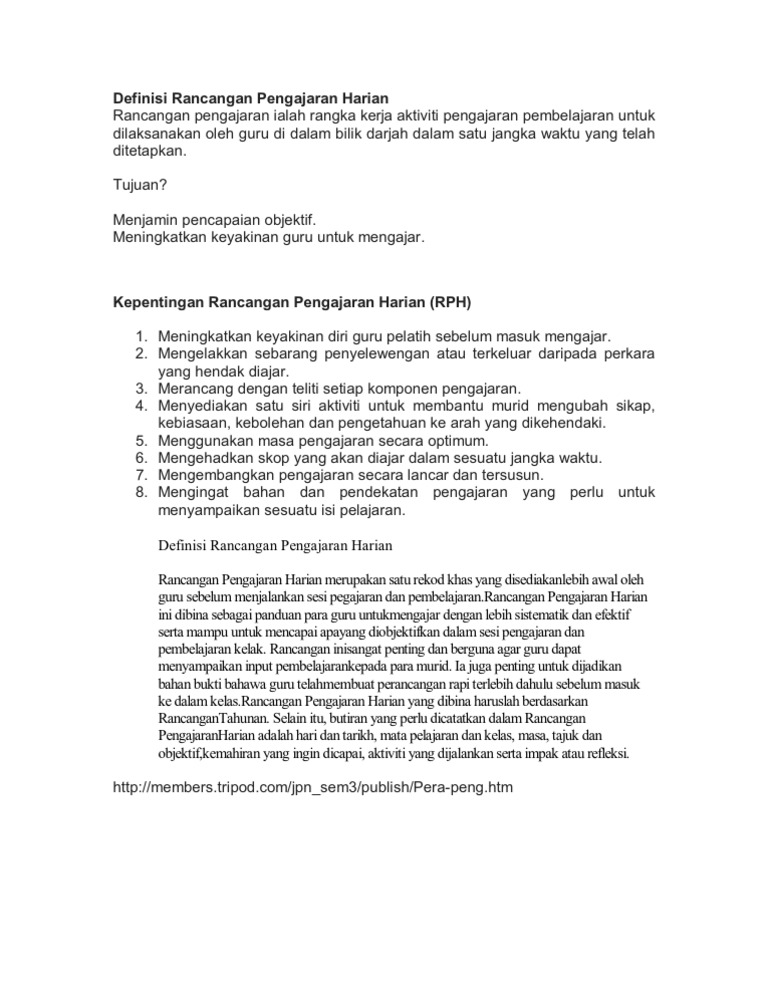 Definisi Rancangan Pengajaran Harian