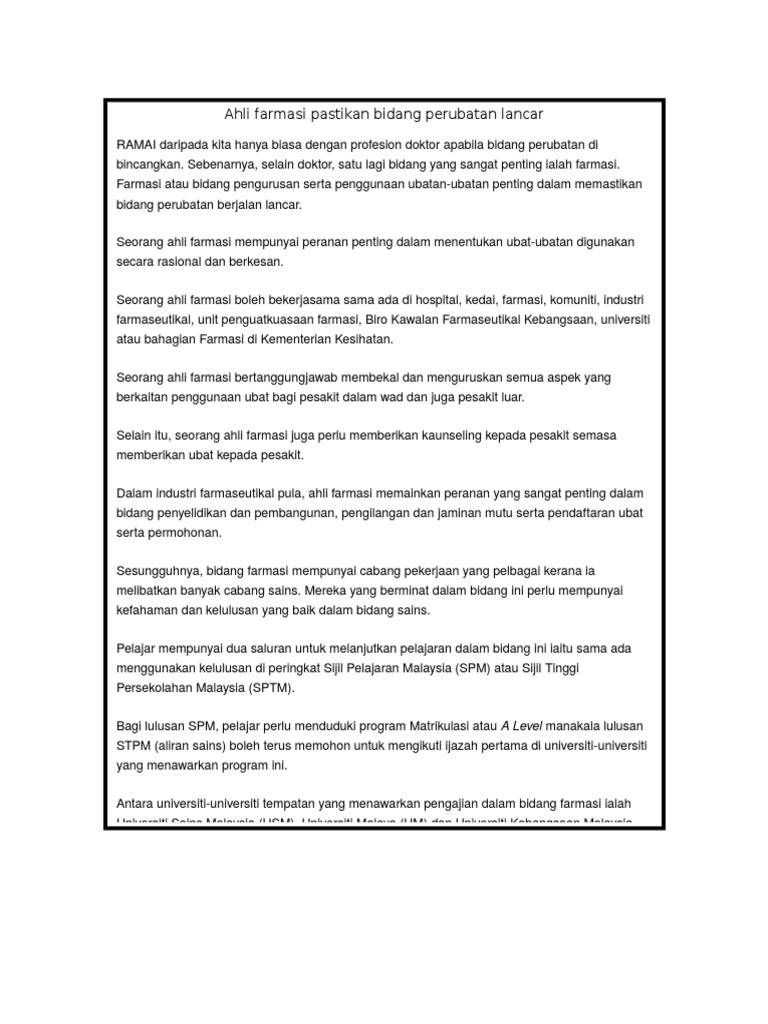 Kerjaya Di Bidang Perubatan Docx