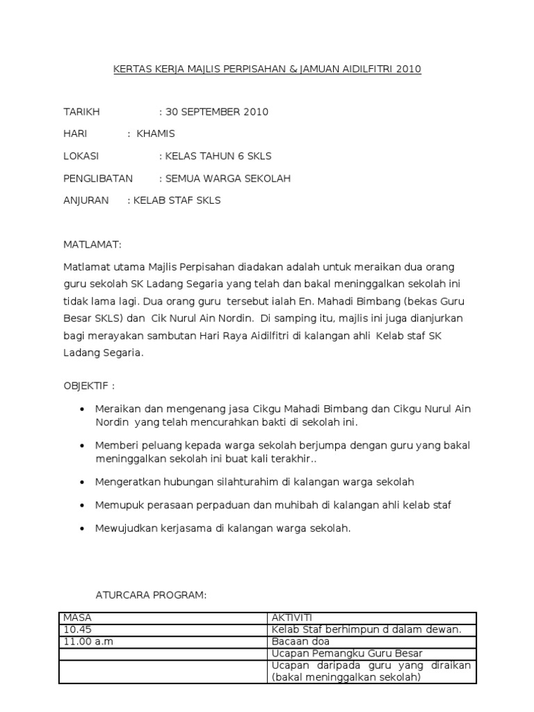 Kertas Kerja Jamuan Perpisahan Sambutan Aidilfitri