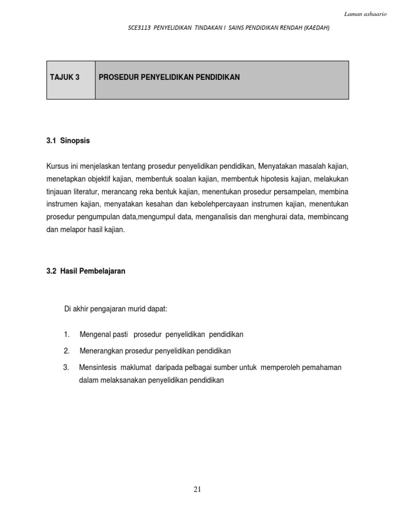Tajuk 3 Prosedur Penyelidikan Pendidikan Pdf