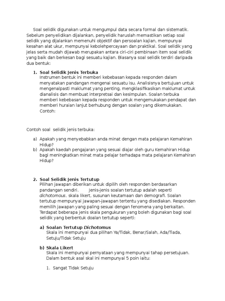 Bincangkan Ciri Ciri Pembinaan Item Soal Selidik Yang Baik Dan Berkesan Bagi Sesuatu Kajian
