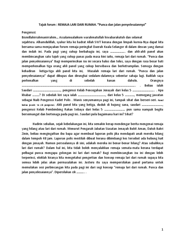 Bahasa Melayu Untuk Pengurusan Sblm1053 Tajuk Masalah Sosial Masalah Remaja Lari Dari Rumah