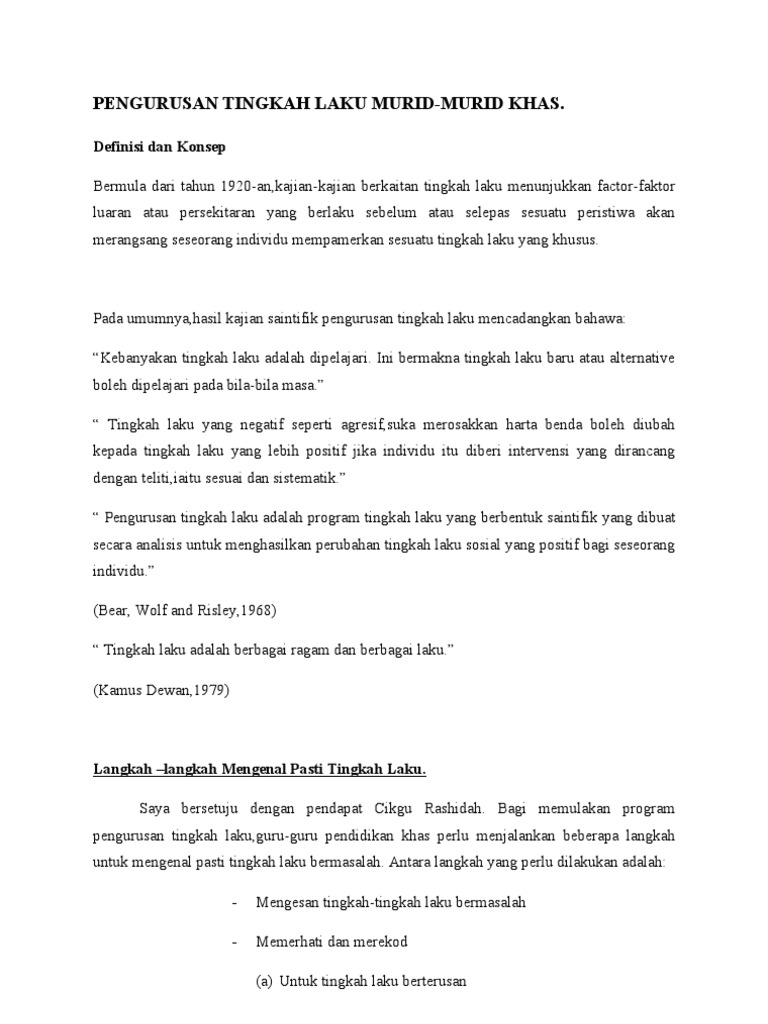Pengurusan Tingkah Laku Murid Murid Khas Definisi Dan Konsep