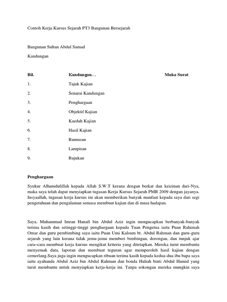 Kssm Contoh Kerja Kursus Sejarah Tingkatan 4 2020