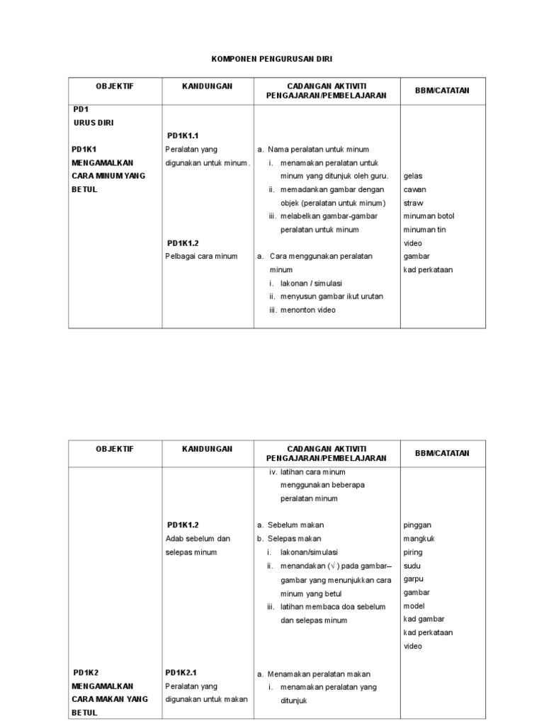Contoh Sukatan Pelajaran Rancangan Tahunan Pengurusan Diri Bagi Pendidikan Khas Dr Dot Nur Tikah