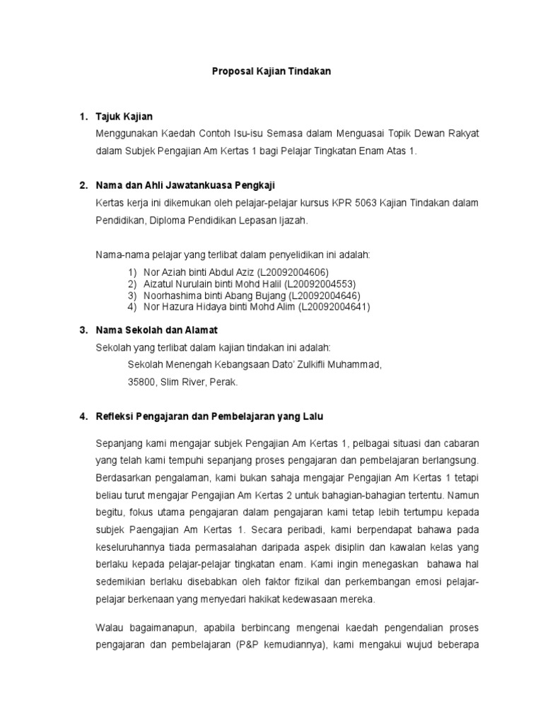 Doc Contoh Penulisan Kertas Cadangan Kajian Tindakan Ana Hamizah Academia Edu