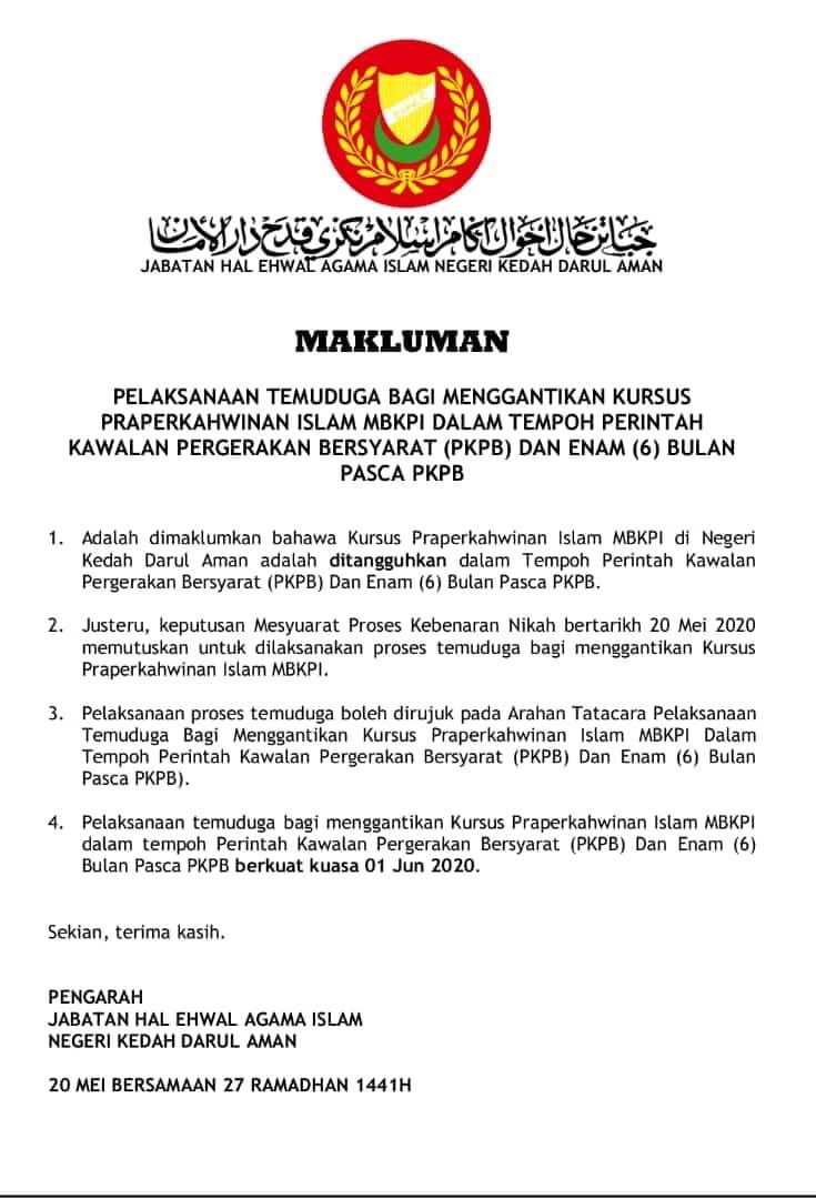 Kedah Benarkan Pernikahan Tanpa Kursus Praperkahwinan Sepanjang Pkpb