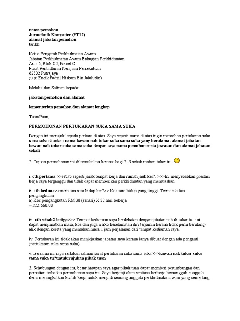 Cth Surat Tukar Suka Sama Suka