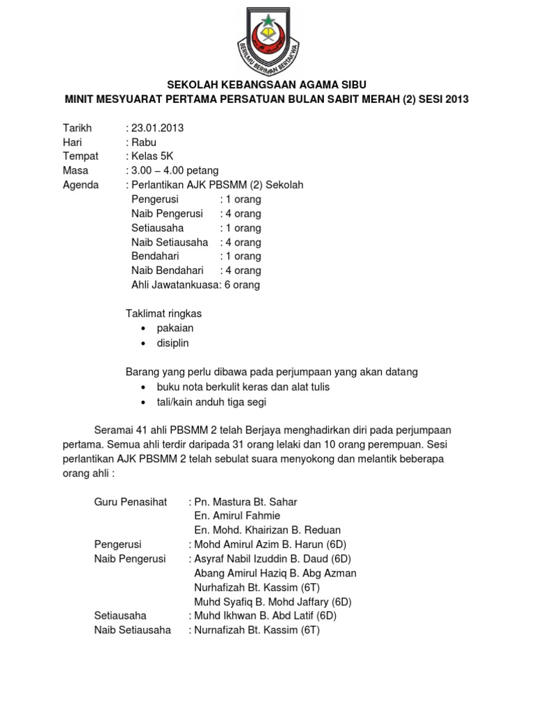 Doc Contoh Minit Mesyuarat Ajk Persatuan Bahasa Melayu Etiesha Rais Academia Edu