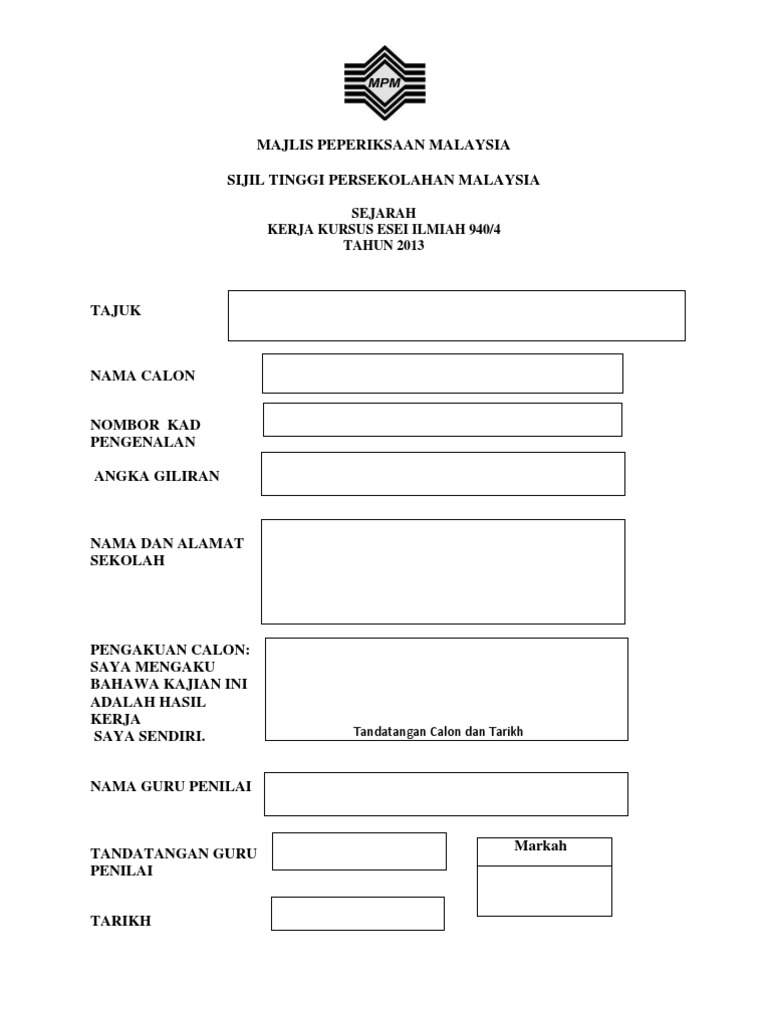 Pdf Terhad Terhad Manual Pelaksanaan Kerja Kursus Pengajian Am Kertas 4 900 4 Majlis Peperiksaan Malaysia Muhammad Syakir Academia Edu