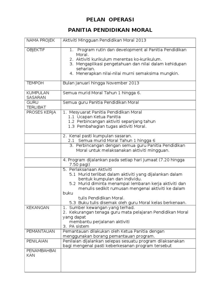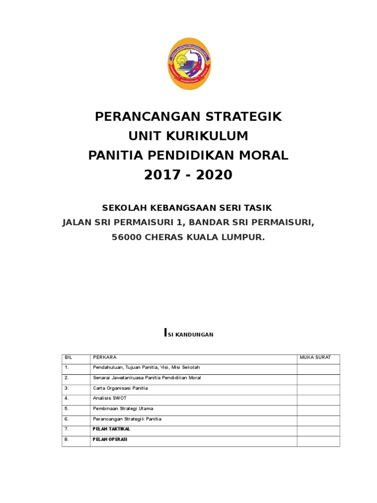 Doc Pelan Strategi 2016 2020 Panitia Pendidikan Moral Smk Limbanak Herald Sajail Academia Edu