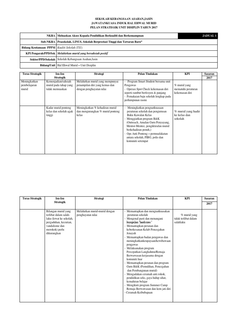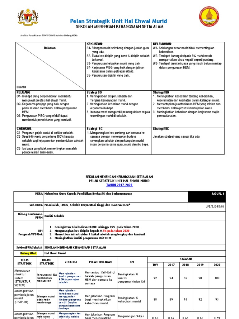Doc Pelan Strategik Hal Ehwal Murid 2017 2020 Vikneswary Maniam Academia Edu