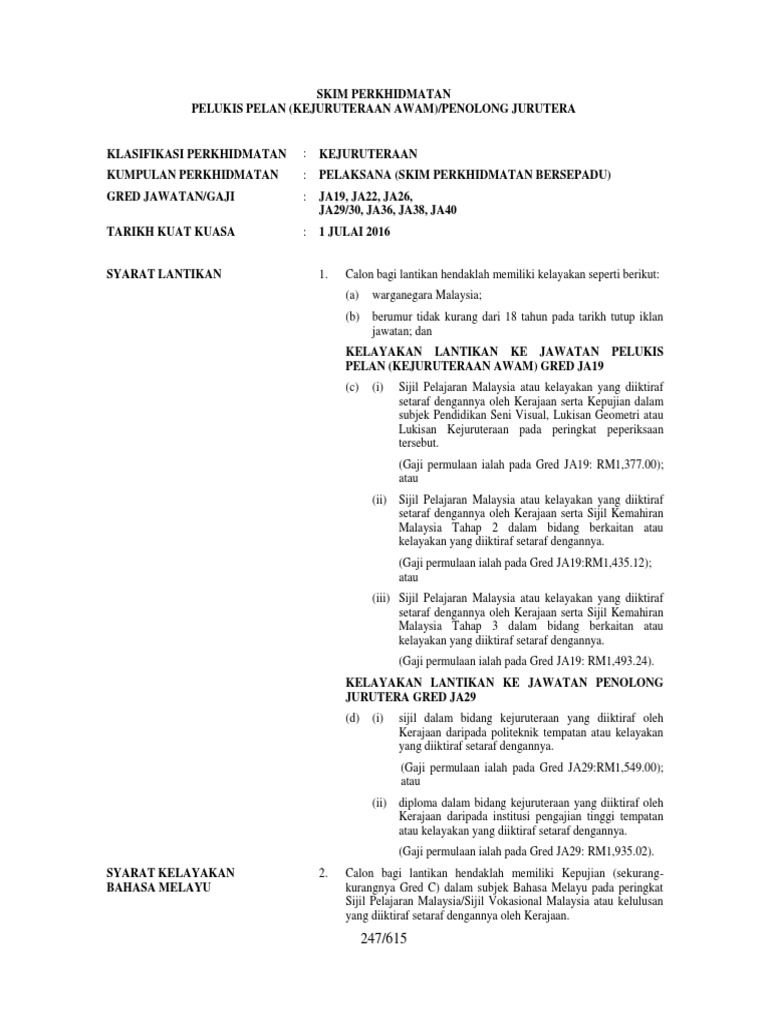 Gaji Kelayakan Tugas Pelukis Pelan Kejuruteraan Awam Gred Ja19 Ja29 Spa