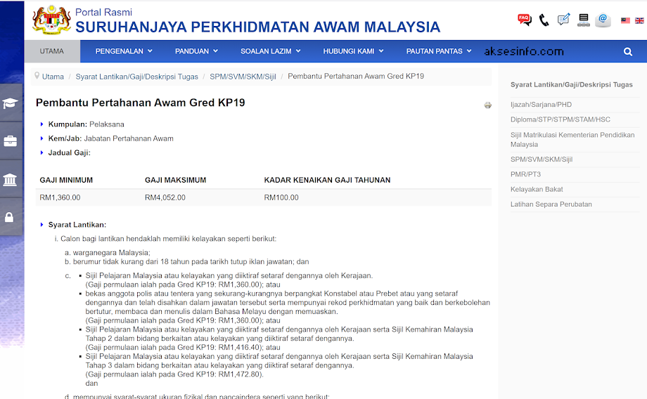 Jawatan Kosong Pembantu Pertahanan Awam Gred Kp19 Jawatan Kosong Terkini Negeri Sabah
