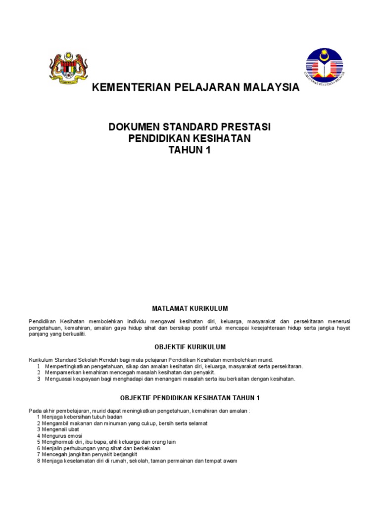 6 10 Standard Prestasi Pendidikan Kesihatan Kssr Tahun 1