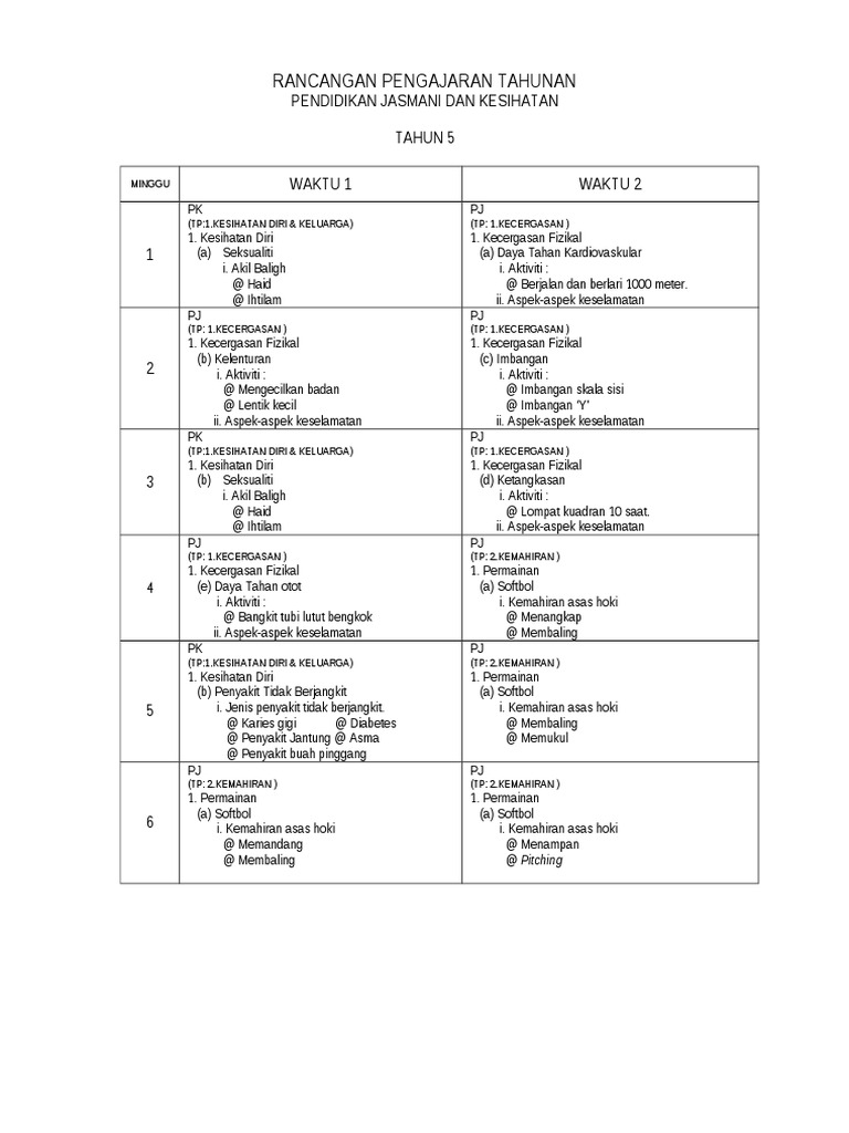 Rpt Pendidikan Jasmani Dan Kesihatan Tahun 4 2020 Pages 1 10 Text Version Anyflip