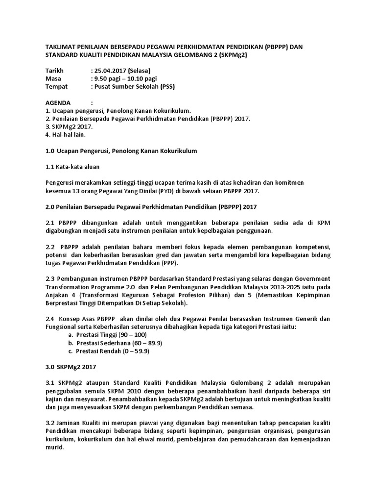 Pengumuman Kpm Penilaian Bersepadu Pegawai Perkhidmatan Pendidikan Pbppp Bil 1 2019 Bumi Gemilang