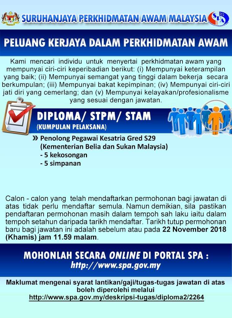 Jawatan Kosong Terkini Kementerian Belia Dan Sukan Kbs 34 Kekosongan Jawatan Penolong Pegawai Belia Sukan Kerja Kosong Kerajaan Swasta