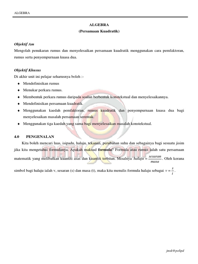 Soalan Matematik Tingkatan 1 Kuasa Dua Selangor M