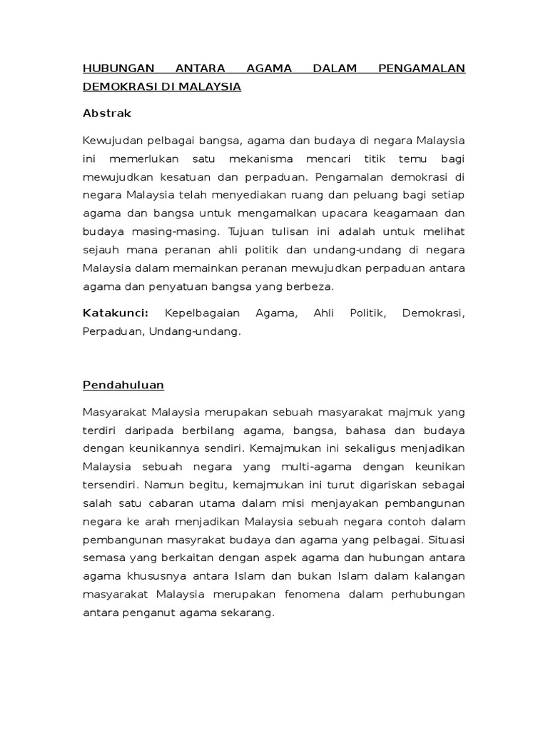 Doc Hubungan Antara Agama Dalam Pengamalan Demokrasi Di Malaysia Syed Haashim Academia Edu